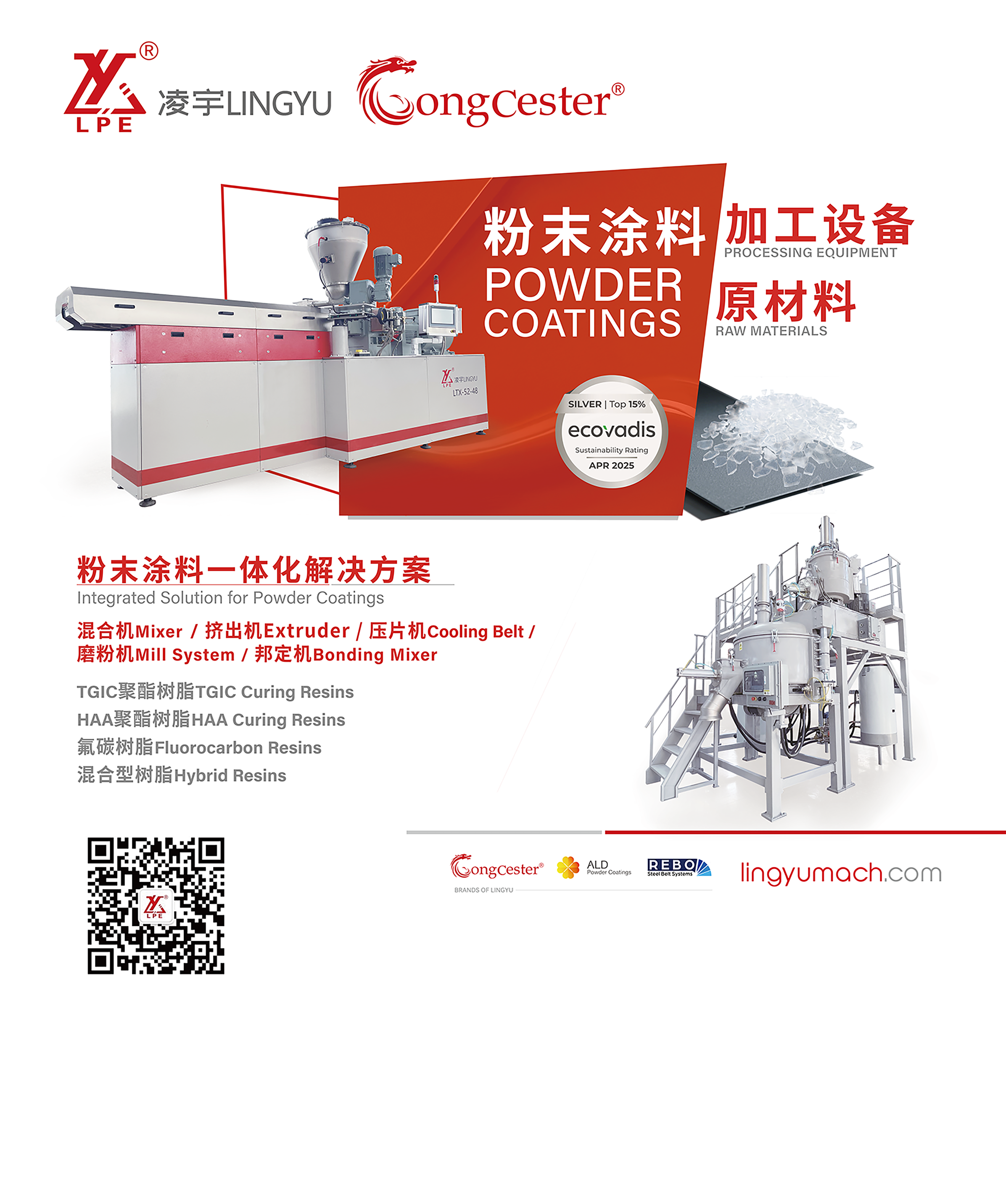 作為本次大會(huì)的支持單位,凌宇機(jī)械自1999年成立以來(lái),便深耕于粉末涂料制粉設(shè)備的研發(fā)與制造領(lǐng)域。公司產(chǎn)品線豐富多元,涵蓋混合機(jī)、擠出機(jī)、壓片機(jī)、磨粉機(jī)、邦定機(jī)以及實(shí)驗(yàn)室設(shè)備等,全方位滿足粉末涂料生產(chǎn)的多樣化需求。